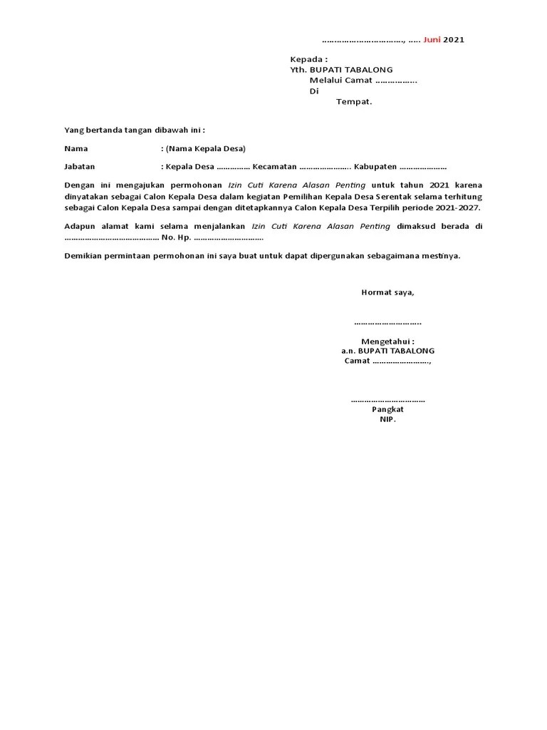 Kali ini kita fokuskan pada format . Contoh format surat permohonan dan cuti tahunan. Untuk incumbet permohonan ditujukan kepada bupati dan sedangkan untuk perangkat desa suratnya ditujukan kepada kepala desa. Diatur ketentuan mengenai cuti bagi kepala desa dan. Contoh format surat permohonan dan izin cuti kepala desa tahunan. Menerima informasi hasil verifikasi berkas permohonan;